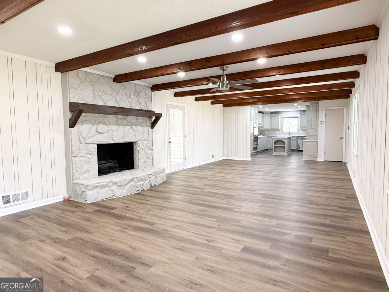 Welcome home to this completely renovated retreat on over 5 acres, offering the perfect blend of modern updates and peaceful country living. This beautifully updated 4 bedroom, 2.5 bath home has been thoughtfully refreshed from top to bottom with new interior and exterior paint, brand new flooring throughout, updated lighting, and all new outlets, switches, and plates. The kitchen has been tastefully updated with freshly painted cabinets, new countertops, stylish backsplash, new appliances, and updated hardware, creating a bright and functional space for everyday living. Both full bathrooms have been fully renovated with new tile, vanities, toilets, and mirrors, and new door hardware has been installed throughout the home for a clean, cohesive finish. A separate dining room and a keeping room make entertaining easy. The partially finished basement provides incredible additional living space, featuring a large family room with a stunning stone fireplace, a 4th bedroom or flex space, and an oversized garage perfect for storage, hobbies, or extra vehicles. Major system upgrades include a new roof, two new HVAC units, new water heater, new garage door and motors, new gutters, and a new front door, offering peace of mind for years to come. Step outside to enjoy the freshly screened deck overlooking your private acreage, ideal for relaxing or entertaining while taking in the serene surroundings. A large parking pad ensures plenty of parking space for everyone. Conveniently located near shopping, dining, healthcare, and entertainment, this move-in ready home offers the rare opportunity to enjoy modern living on a beautiful, spacious property. *This listing contains virtually staged photos.