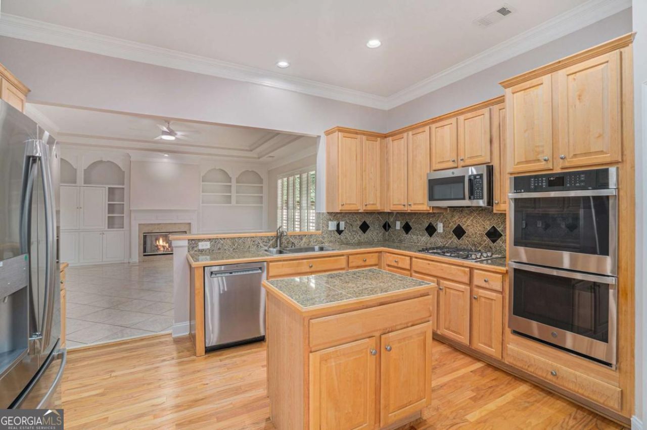 Nestled within the secure gates of Dunwoody's Ashworth Preserve, this home exudes curb appeal and peace of mind thanks to its owner's attention to detail. Fresh exterior paint, renovated privacy fencing, a 2021 roof, gutters with gutter guards, locking glass storm doors (front and back) and meticulously maintained landscaping provide an initial visual impact that leaves the eye wanting to see what lies beyond the front of this brick beauty. Inside, your attention is drawn to the freshly painted ceilings, walls, and trim, the elegant foyer that spills into the spacious formal living room, the formal dining room with tray ceiling and beautiful woodwork, and the newly refinished downstairs hardwood floors. You'll appreciate the newly upgraded polished door hardware, custom plantation shutters, as well as the stunning new light fixtures throughout the home. The chef's kitchen dazzles with all-new stainless-steel appliances, a custom pantry, and an adjacent breakfast nook, creating an inviting spot for casual meals or weekend brunch. Warmth and character await in the family room where tile floors anchor a marble-surrounded gas-lit fireplace, flanked by custom-built-in cabinets and a desk underneath yet another tray ceiling. For comfort and convenience, a remodeled powder room with a new vanity, toilet, and lighting is located just off the family room. Thoughtful updates/upgrades continue upstairs with a laundry room outfitted with custom cabinetry, washtub, gas AND electric dryer connections, new upgraded washer connections, and a built-in ironing board. Wander through the four spacious upstairs bedrooms with Bruce hardwood flooring installed in 2003 and enjoy breezes from ceiling fans in all bedrooms, new upgraded light fixtures, and new toilets in all three upstairs bathrooms. The primary bedroom features a tray ceiling and an ensuite with private toilet room, shower stall, whirlpool tub, and double vanity leading into the spacious primary closet, which features custom cabinetry to make organizing your wardrobes a snap! The rear corner guest bedroom features a vaulted ceiling, dual closets with custom cabinetry, and its own ensuite with vanity and bathtub/shower combination. The two front guest bedrooms are connected by a Jack-and-Jill bathroom with two vanities, a window seat with storage, a linen closet, and an enclosed toilet, bathtub/shower room. The small doors in these bedrooms open to reveal a surprise: hidden storage areas that you will love. Down the stairs and out the back door you'll enjoy the professionally landscaped backyard that unfolds over two serene tiers - above, a secluded terrace perfect for morning coffee or unwinding after a long day; below, enjoy the expanded patio with natural gas for anytime grilling or the lawn and flower beds for play or getting your gardening on. All in all, the meticulous care and tasteful upgrades give this home a turn-key feel, marrying timeless style with modern comforts.