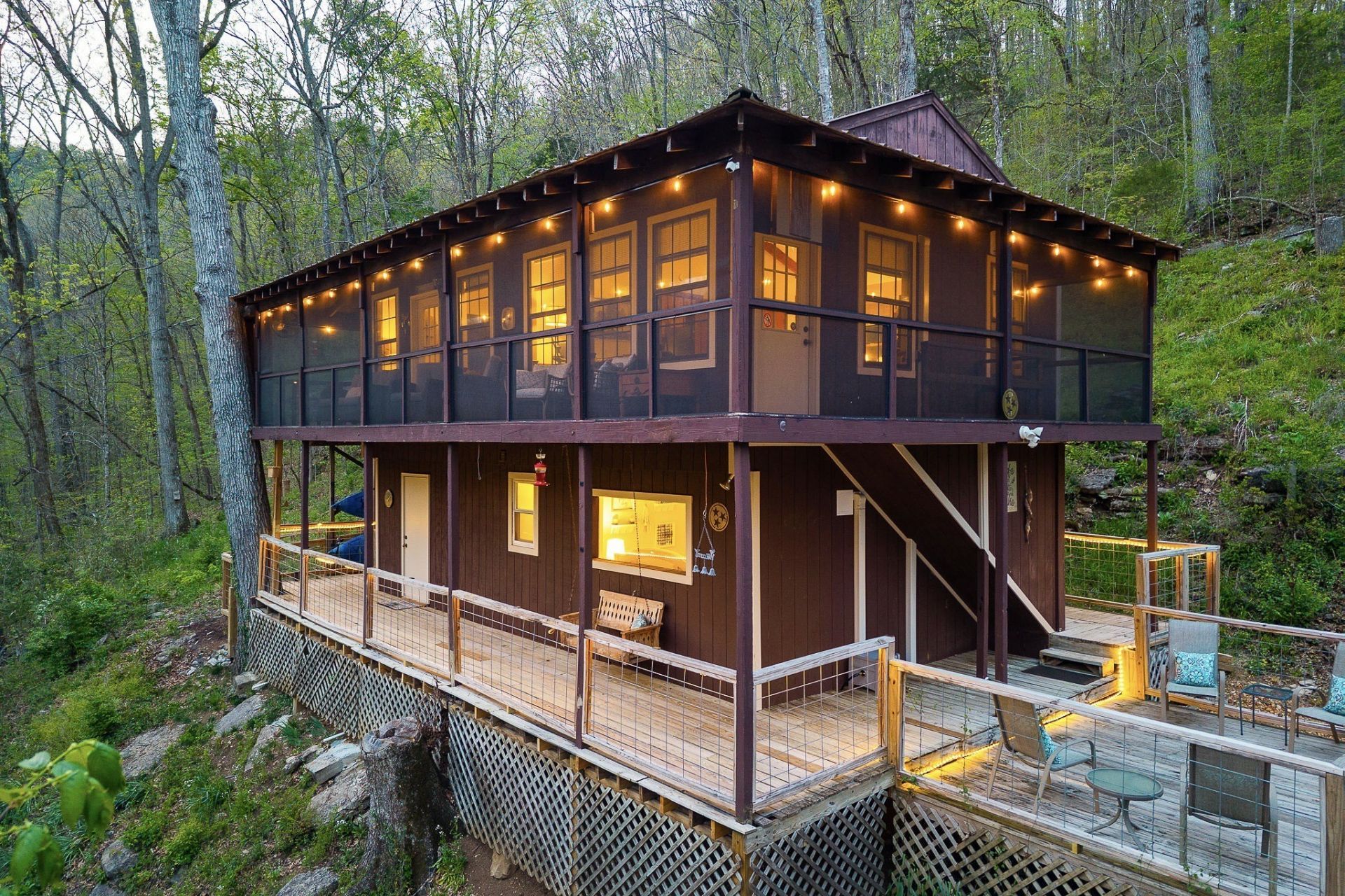 Escape to Center Hill in this private cabin retreat tucked away on three lots totaling 1.26 acres. Located on a gated dead-end road, this fully furnished 3 bedroom, 2 bath property offers rare privacy, security, and the peaceful feeling of being completely surrounded by nature. With its elevated setting and wooded backdrop, it truly feels like your own tree house retreat near the lake. Inside, the home offers open living spaces filled with warmth and character, along with a charming vintage cabin feel that makes it instantly inviting. Outside, the double wraparound covered decks create the perfect place to relax, entertain, and enjoy the quiet surroundings in every season. A fire pit adds even more outdoor appeal for cozy evenings after a day on the lake. This property is ideally located less than 2 miles to Holmes Creek Recreation Area, where you can enjoy convenient access to a boat launch, and it is also only minutes to Hidden Harbor Marina and historic downtown Smithville. Known for its scenic beauty and recreational lifestyle, Center Hill Lake is one of Middle Tennessee's favorite destinations for boating, fishing, kayaking, and weekend escapes. Whether you are looking for a full-time residence, weekend getaway, or investment property, this property offers privacy, charm, and an unbeatable location near everything that makes Center Hill Lake so special.