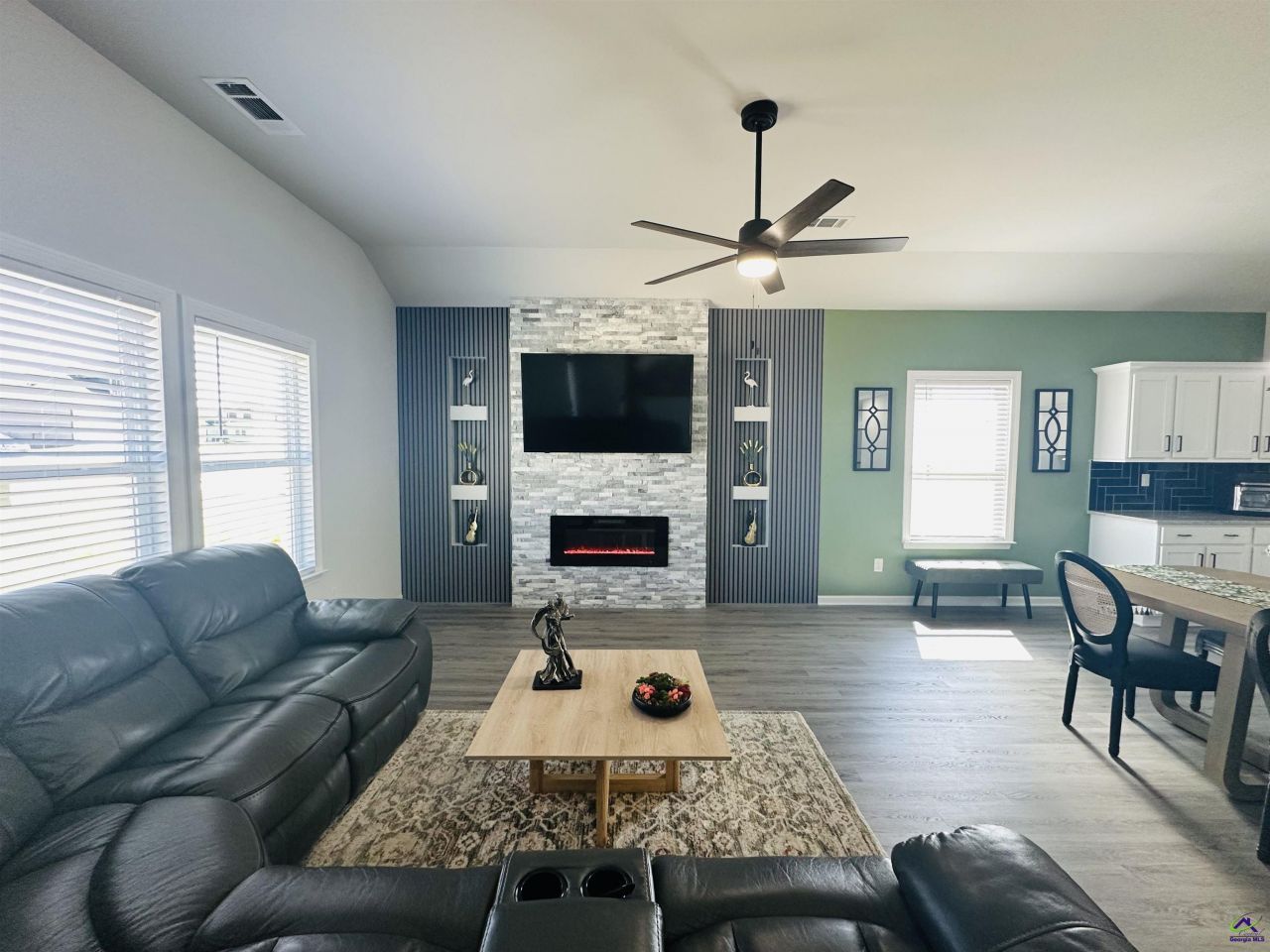 Come home to this beautifully upgraded 2024, 3-bedroom, 2-bath home designed with both style and comfort in mind. The spacious living area features a stunning stone fireplace with a custom niche accent wall, creating a warm and inviting focal point. Each bedroom showcases its own unique accent wall, adding character throughout the home. The kitchen shines with a beautiful tile backsplash that brings personality and charm, complemented by modern finishes and an upgraded Nest thermostat you can conveniently control from your phone. Enjoy durable and stylish LVP flooring throughout, making maintenance a breeze. This home is truly move-in ready and includes security cameras and all appliances?refrigerator, washer, and dryer?so you can settle in with ease. Step outside to an extended concrete patio, perfect for entertaining family and friends. The front yard features a thoughtfully designed rock garden with a specialized stone binder to keep everything neatly in place and low-maintenance. As an added bonus, a preferred lender is offering up to $1,500 in lender credits. Don't miss the opportunity to make this exceptional home yours!
