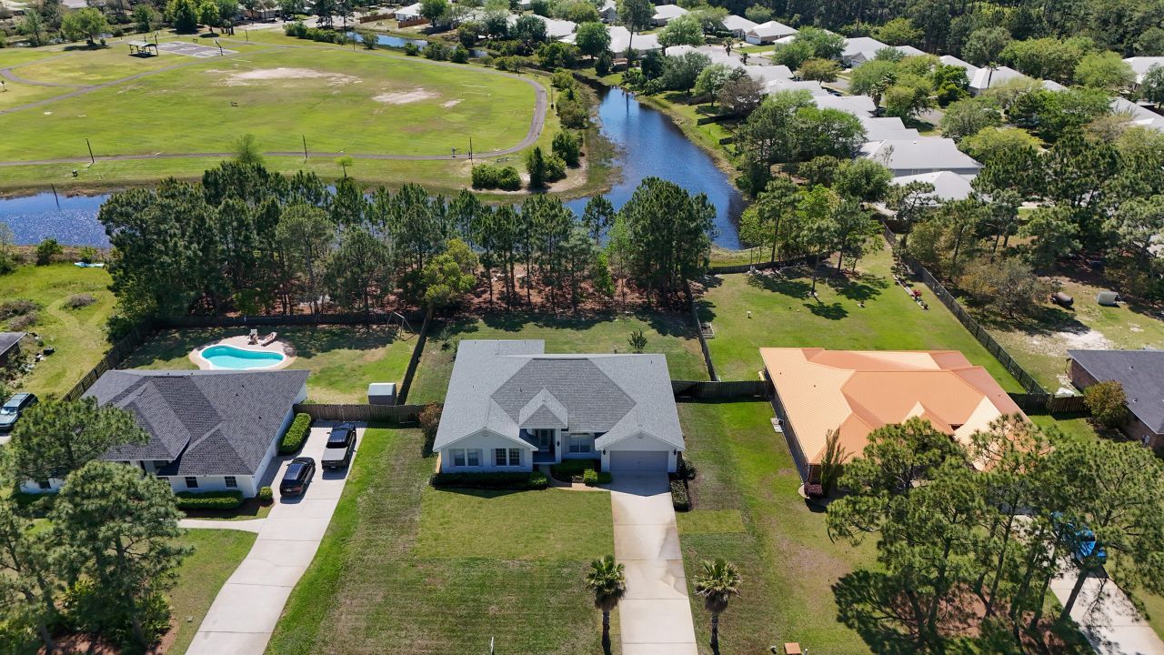 This sprawling, open floor plan, single story brick home is a must see. 4 bedrooms, 3 baths almost 3000 sq ft of living space, sitting on over a half acre lot, backs up to a lake & park. 5 ton AC unit installed in 2025, all these replaced in 2022 roof, water heater, appliances, washer/dryer, vinyl plank flooring through out, tubs, toilets, countertops, backsplash, lighting, custom closets. Inside you will find a large kitchen with 2 islands, giving additional counter & seating, walk-in pantry. Large living with high ceilings, electric fireplace. Oversized Main bedroom with en suite, double sinks, shower and soaker tub. Fenced back yard, big patio, two-car garage plus ample driveway. Close proximity to Choctawhatchee Bay, Publix, Sacred Heart Hospital, shops at Grand Blvd.