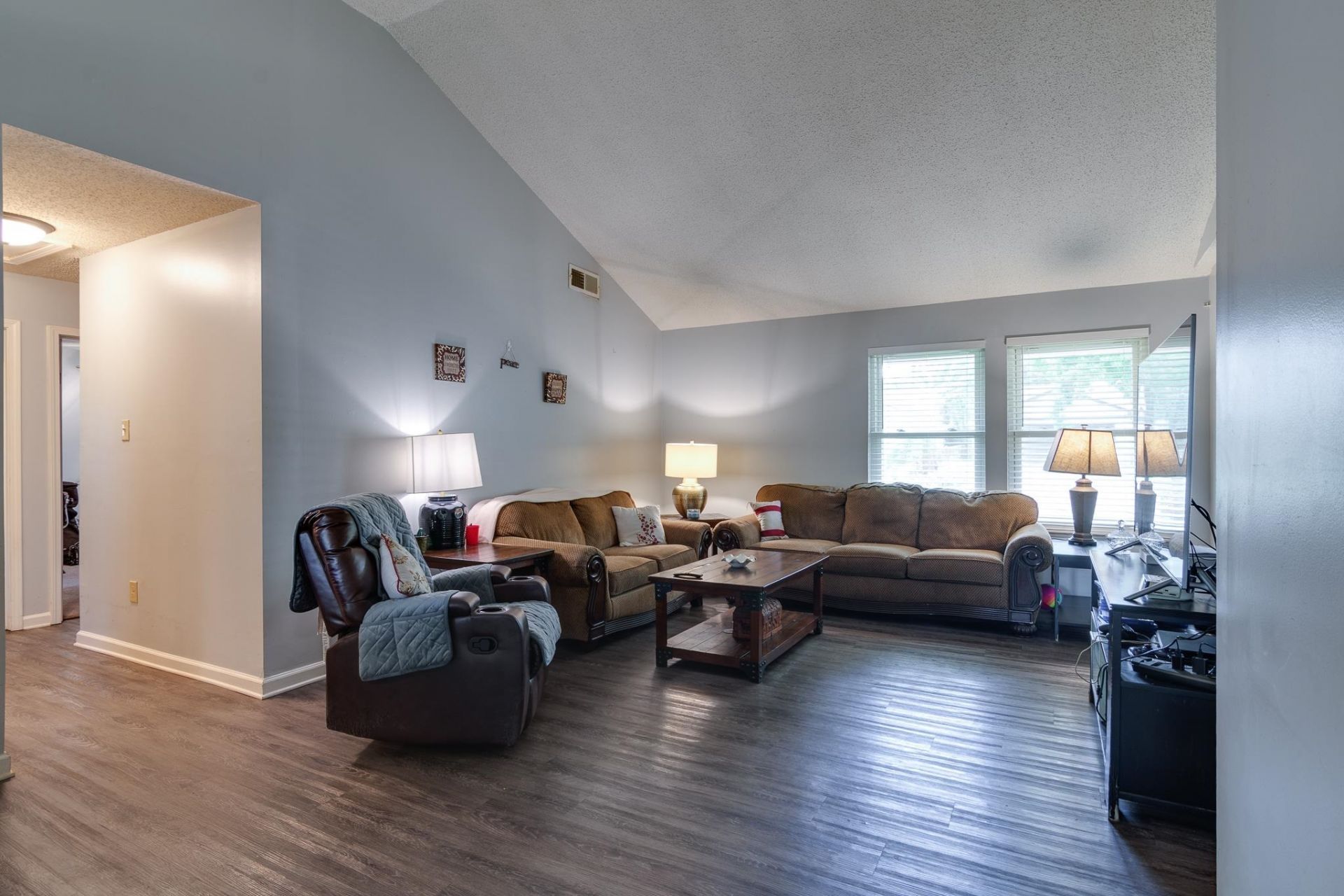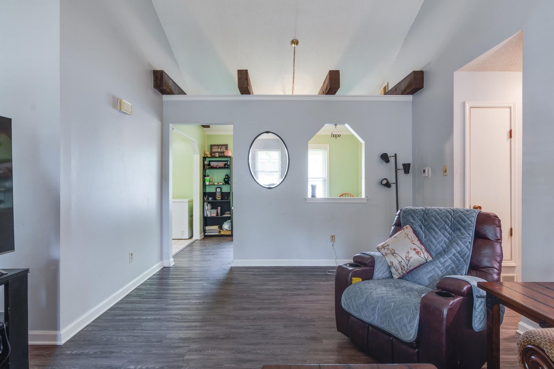 Charming 3-bedroom, 1.5-bath starter home full of warmth and character! A welcoming front porch invites you into a bright, vaulted family room that creates an open and airy feel. The layout includes a separate dining area, perfect for gatherings, and a well-appointed kitchen featuring sleek stainless steel appliances. Step outside to a covered back patio overlooking a fenced backyard?ideal for relaxing, entertaining, or pets?with an added storage building for extra convenience. A wonderful place to call home!