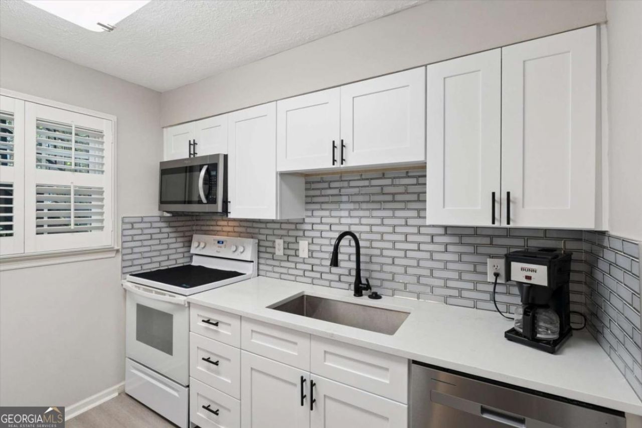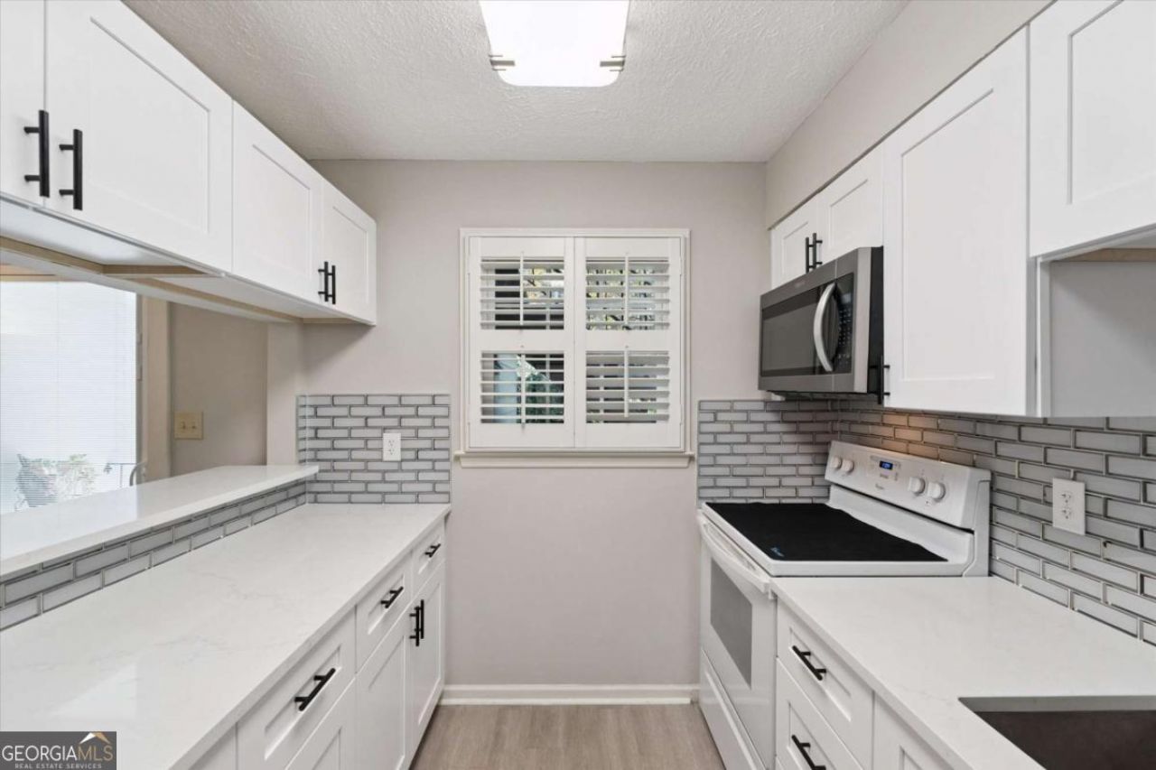 This beautifully upgraded and designed 2-bedroom, 2-bathroom Condo in Atlanta is ready for its new owner! The windows and sliding door have been upgraded with Pella Custom brand windows, and the kitchen window features plantation shutters for optimal sunlight control. Step inside to discover a spacious living room, perfect for hosting and entertaining. The adjacent dining area is bathed in natural light, creating a cheerful atmosphere for every meal. The upgraded kitchen boasts quartz countertops and new stainless steel appliances, including a microwave and dishwasher, along with ample cabinet storage for preparing your favorite dishes. Both bedrooms are designed for comfort, and the primary suite includes a private, upgraded bathroom for added convenience. Both bathrooms have been modernized with stylish shower and bath finishes. When warm weather returns, step out onto the cozy patio, perfect for enjoying morning coffee or unwinding with a good book. Want to see this unit in person? Schedule a showing with your favorite agent today! All amenities-including water, pool, tennis, playground, and maintenance-are included with one of the lowest HOA fees in the area. The location is a five-minute drive to downtown Sandy Springs, offering easy access to the gym, shops, restaurants, and the Sandy Springs Tennis and Pickleball Center, which is located just around the corner. This condo offers easy access to Hwy 400 and I-285, placing The Battery, Buckhead, Avalon, and Midtown within a short drive. MARTA provides convenient train access to the airport. This is an excellent opportunity!
