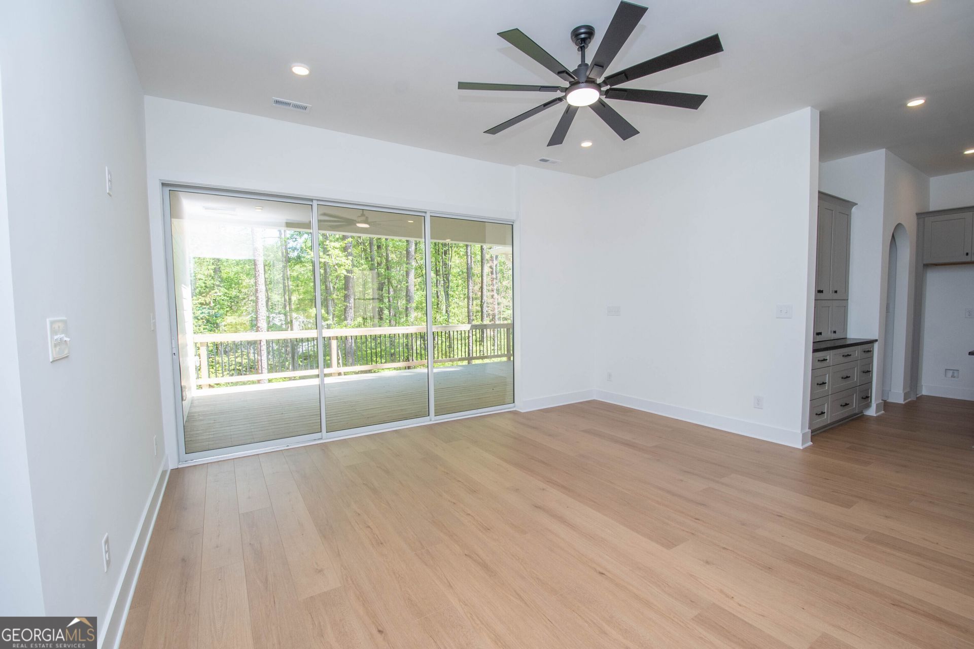 Welcome to this beautifully crafted custom ranch-style home, perfectly situated on a private 1-acre lot in desirable Fayette County. Designed with both everyday comfort and effortless entertaining in mind, this home features a thoughtfully designed split-bedroom floor plan. The spacious owner's suite is privately tucked away and offers a large walk-in closet and a well-appointed en-suite bath. Just off the primary wing, a small versatile flex space provides the perfect setting for a mini home office, playroom, or even a dedicated secondary closet. On the opposite side of the home, you'll find a secondary master suite along with an oversized guest bedroom, connected by a full bath-ideal for accommodating family and visitors with ease. At the heart of the home, the open-concept living, dining, and kitchen area creates a seamless and inviting gathering space. The kitchen is a standout, featuring a large central island, an impressive built-in banquette and coffee bar, abundant workspace, and a convenient appliance garage-all flowing effortlessly into the main living area. Everyday functionality is elevated with a spacious laundry room, an expansive walk-in pantry, and a practical drop zone bench. The true highlight of this home is its exceptional indoor-outdoor living. Stunning 8-foot collapsible glass doors open to covered porches with beautiful tongue-and-groove ceilings, offering peaceful views and the perfect setting for relaxing or entertaining year-round. Located in Fayette County, this home provides a serene, private setting while remaining conveniently close to shopping, dining, and major commuter routes. Blending the ease of new construction with timeless charm this house is ready to become a forever home.