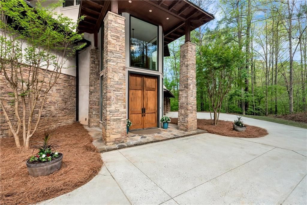 A rare architectural 4 bed 4 bath masterpiece on the banks of the Chattahoochee River, this home is a seamless dialogue between Frank Lloyd Wright's organic legacy and the vision of famed architect Kenneth Lynch. Built in 2004, the residence showcases mid-century principles?horizontal lines, open-concept flow, and a deep connection to nature? wrapped in stone and glass with structural steel design construction. Offered for the first time since its completion. Experience unparalleled seclusion on this 2.57 acre estate. Positioned directly on the Chattahoochee and across from a state park , the property offers a rare opportunity to drop a kayak in the river from your backyard. Your journey begins as you enter through the 12ft oak doors with a staircase that ascends to the main living level?a glass-wrapped sanctuary where golden oak floors and an abundance of natural light create a seamless connection to the outdoors. Feel free to take the elevator as well. The heart of the home unfolds through a magnificent barrel-vaulted corridor, leading you into the expansive great room. Here, the open-concept design is anchored by a limestone fireplace and framed by massive Pella glass doors. The chef-caliber kitchen overlooks the living space. Adjacent to the great room is an open dining room that seats 12, surrounded by windows. Entertaining flows effortlessly between the indoors and the elements, featuring three expansive decks and a screened-in porch?complete with it's own fireplace. The main level also hosts two generous guest retreats, a designer bath with stone double vanities. The upper floor features a primary suite, boasting panoramic views, a limestone fireplace, and an en-suite finished in natural stone with custom closet. One more additional bedroom and en-suite bathroom are just across from the elevator. For the car enthusiast, a triple bay, double depth six-car garage. Designed with a sophisticated tandem configuration, this space serves as a private showroom for the most discerning automotive collections as well as an extensive level parking pad.