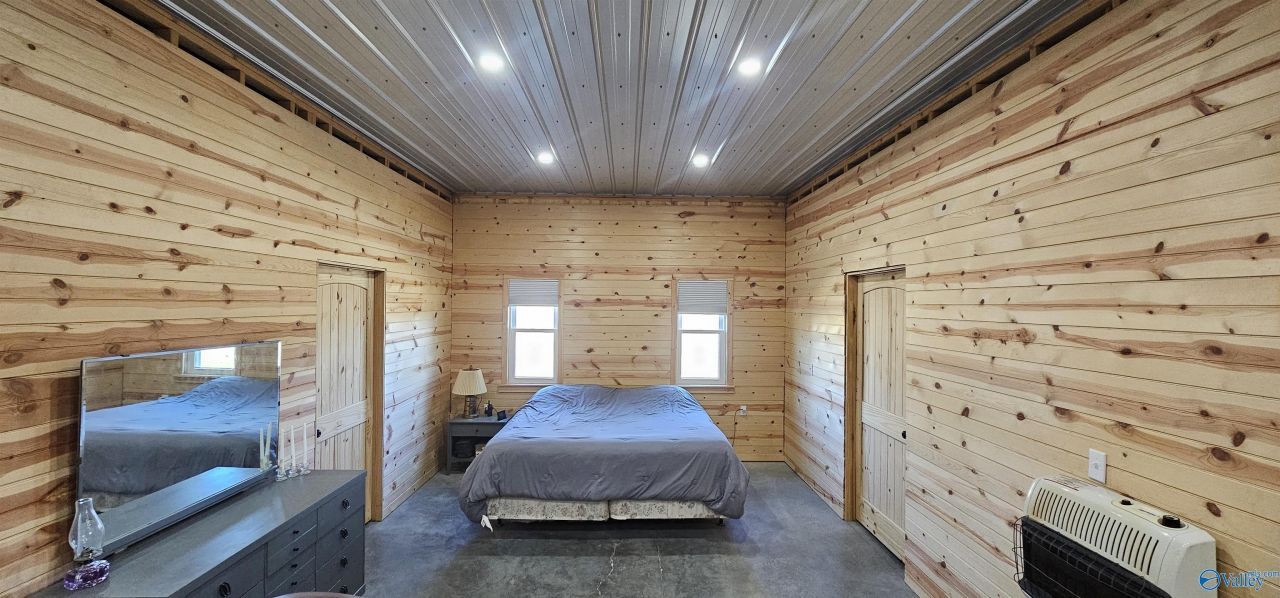 Rustic Modern retreat on 1+/- Unrestricted acre located in Section AL. This property offers the freedom to live your way. Whether you're looking for a full-time residence or a weekend hunting or fishing lodge. Step inside to a wide-open living space featuring white pine tongue and groove walls with recessed lighting throughout. The garage isn't just a place to park it is climate controlled making it an ideal year-round workshop, man cave, or hobby space. This home comes with all appliances, two TV's and a washer and dryer. There is a covered grilling patio. Short drive to Buck's Pocket State Park and Lake Guntersville. Offering plenty of room to plant a garden or build more structures.