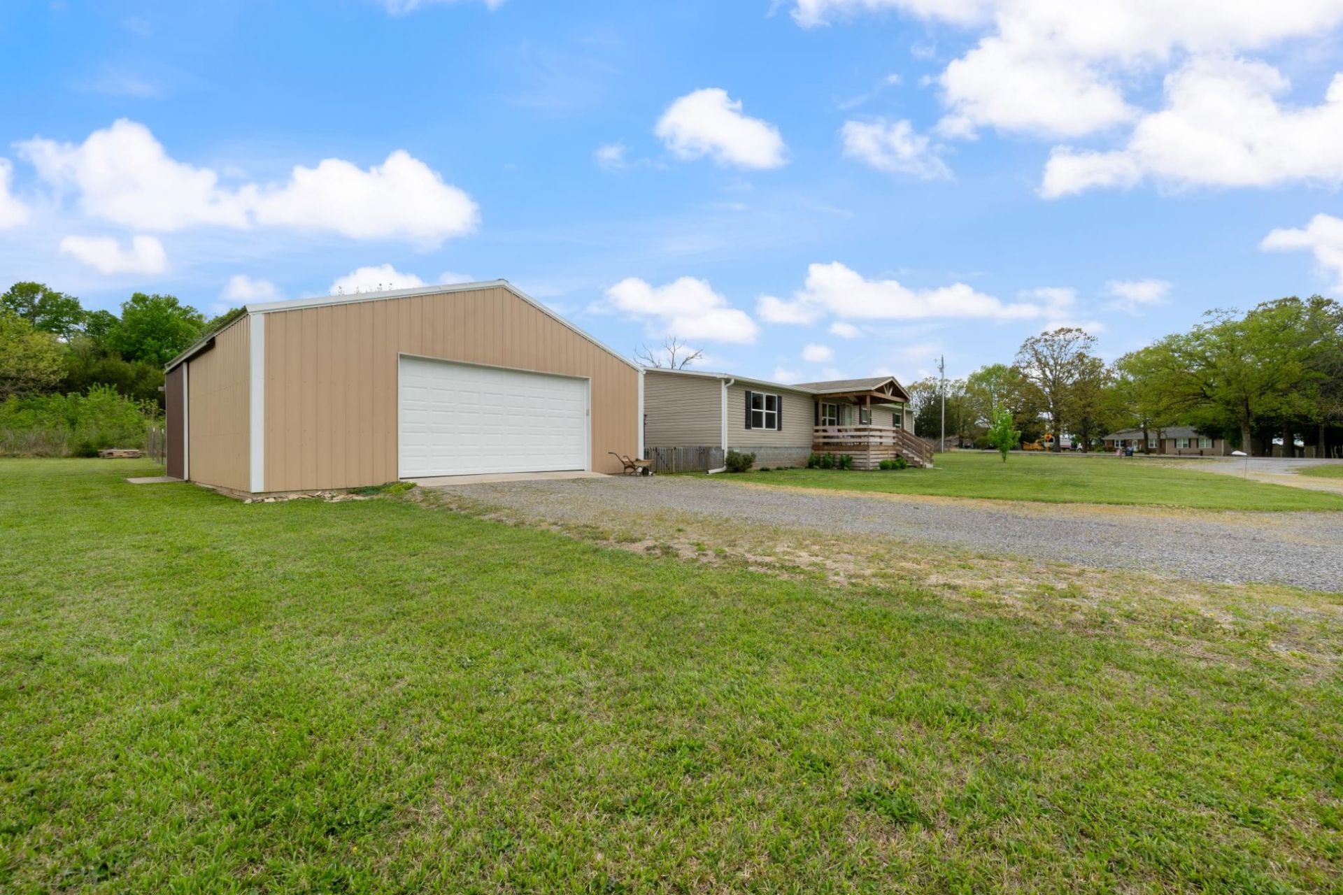 Beautiful manufactured home sitting Permanent foundation on 1.5 acres. 4 Bedrooms and 2 baths. Living room and open den . Great Plan large covered Front porch and Large Back Deck with fenced yard 30x30 Detached Garage with lean to for Boat