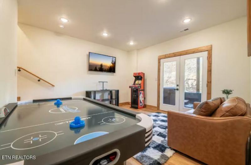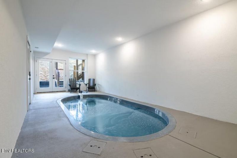 BRAND NEW LUXURY CONSTRUCTION! Thoughtfully designed to maximize short-term rental appeal, this striking 5-bedroom, 5.5-bath mountain retreat delivers high-end finishes and an entertainer's layout throughout. The main level features two bedrooms and two full baths, a stackable washer and dryer, and a dramatic great room showcasing a stack-stone fireplace, cathedral ceilings, and expansive floor-to-ceiling windows that create a stunning sense of space and light. Upstairs, three additional bedrooms offer suite-style accommodations, with two bedrooms sharing a full bath, ideal for flexible guest arrangements. The lower level is a luxury entertainment destination, featuring a game room, theater room, and indoor pool, complemented by a full bath in the pool room. Outdoor enjoyment continues on the lower patio with hot tub, providing a private retreat for year-round use. Premium features include stainless steel appliances, granite countertops, luxury vinyl flooring, extensive glass throughout, and a wood siding exterior that blends modern luxury with mountain character. Ample parking for approximately 4-5 vehicles adds to the home's guest-friendly design. A rare opportunity to own a newly built luxury STR offering architectural impact, high-demand amenities, and an efficient layout tailored for exceptional guest experiences.