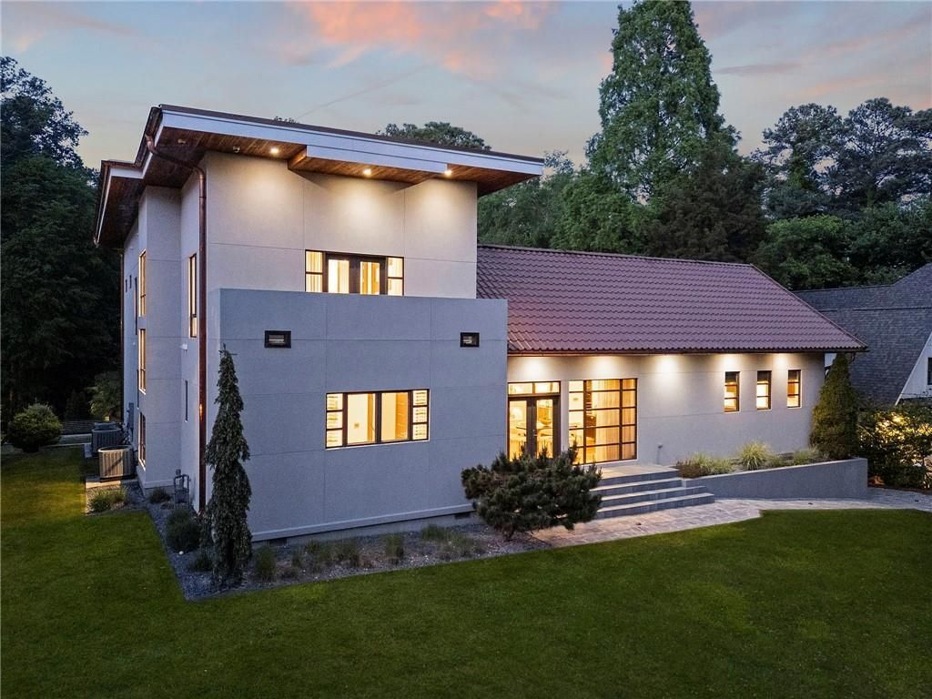 Privately positioned at the end of a quiet cul-de-sac in Buckhead's coveted Peachtree Park, this exceptional custom residence offers a rare combination of architectural pedigree, privacy, and refined modern living on approximately 1 acre.Designed by Moscow-based architect Sergei Semenov, the home reflects a sophisticated European sensibility with clean lines, intentional scale, and an emphasis on light and volume. Soaring ceilings and expansive walls of glass define the interiors, creating a seamless connection to the surrounding landscape and flooding the home with natural light throughout the day.The main living spaces are both dramatic and inviting, anchored by a massive chef's kitchen designed for both everyday living and entertaining. Heated floors, generous workspace, and a commanding presence make this kitchen the true heart of the home, opening effortlessly to the living and dining areas. The living room opens to a large covered patio and grilling area that overlooks the back lawn.Constructed with durable concrete siding, the exterior offers both architectural distinction and long-term integrity. Foam insulation and commercial grade windows and galvanised metal roof imported from Finland with a 50 year lifespan. Outdoors, a private resort-style setting awaits with a saltwater pool and spa, surrounded by mature greenery, palm trees, large flat lawn and ample space for relaxation or entertaining.Additional features include a spacious three-car garage, freshly repainted interiors, and a level of maintenance and care that allows for immediate enjoyment.A rare offering combining design, scale, and setting?this is a true Buckhead retreat with global architectural influence and timeless appeal.
