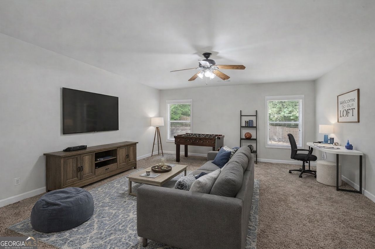 Welcome to this stunning home, nestled on a peaceful cul-de-sac in the highly sought-after Centennial Lakes community. With its charming curb appeal and an interior that blends modern convenience with relaxed living, this home is designed to impress. Featuring thoughtful design and quality upgrades throughout, it offers the perfect balance of style and functionality. As you step into the inviting two-story foyer, you'll be greeted by bright, open living spaces that flow seamlessly into the newly renovated kitchen. The kitchen, open to the spacious family room with a cozy fireplace, creates an ideal setting for both everyday living and entertaining. Featuring crisp white cabinetry, sleek countertops, and upgraded stainless-steel appliances, it's a chef's dream that ensures meal prep and cleanup are a breeze while still being part of the action in the heart of the home. Recent updates, including a new HVAC system, roof, and fresh paint throughout, ensure that this home is move-in ready and offers modern comfort. The home has been freshly painted in a contemporary light gray, creating a clean and cohesive feel throughout. The spacious living areas are perfect for family gatherings, while the well-sized bedrooms provide cozy retreats for everyone. The oversized primary suite offers a peaceful escape, complete with a fully updated ensuite bathroom featuring dual vanities, premium finishes, and generous closet space with built-in storage. Each of the three full bathrooms has been thoughtfully refreshed with stylish fixtures and high-quality finishes. Additional upgrades include a brand-new air-conditioning unit, ensuring year-round comfort and peace of mind. Outside, you'll find a fully fenced backyard, providing a private outdoor retreat perfect for enjoying time with family or entertaining guests. The oversized driveway offers plenty of room for multiple vehicles and convenient guest parking. Situated on a quiet cul-de-sac, this home offers a serene atmosphere while still being close to neighborhood amenities like the clubhouse, pool, tennis and pickleball courts, and top-rated schools, shopping, and dining. Just a short drive from downtown Acworth, you'll have easy access to charming local shops, restaurants, and community events. Enjoy the natural beauty of nearby parks, walking trails, and lakes, ideal for outdoor activities. Zoned for highly regarded schools and offering convenient access to major highways, this home combines comfort with practicality. With its refined interiors, stylish upgrades, and spacious outdoor areas, this Acworth gem is ready to be your new home. Don't miss the chance to make it yours!