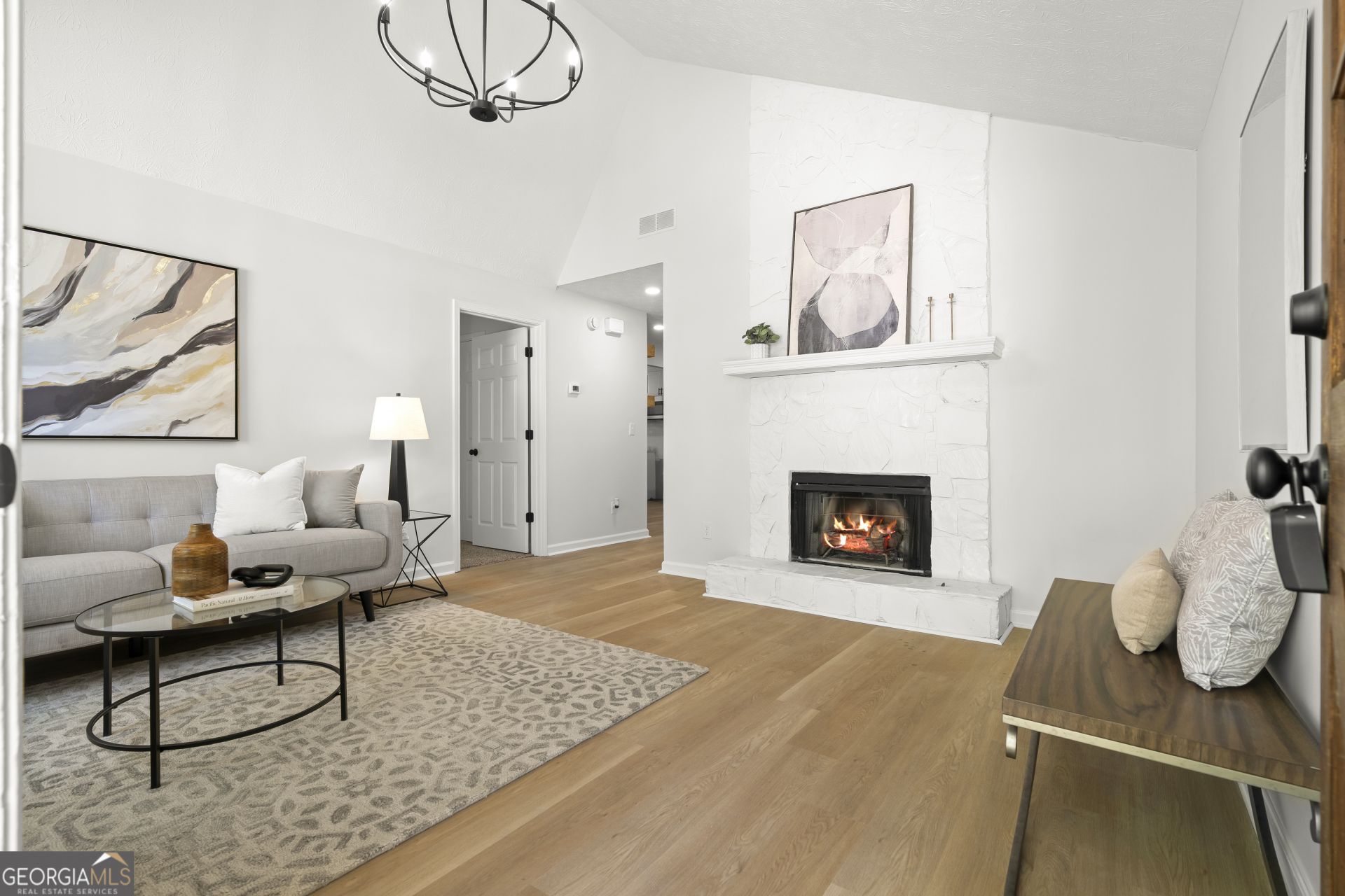 Updated 3 bed, 2 bath ranch in the Norris Lake Shores community. The living room features lofted ceilings that create a grand feel, and the fireplace ties it all together. The new kitchen includes white cabinets, a tiled backsplash, stainless steel appliances, and trendy black hardware. The primary suite is beautiful with tray ceilings and an en suite bathroom featuring a new vanity, updated hardware, and a tiled standalone shower. The second bathroom has been updated in a similar manner. Other highlights include a garage, rear deck, and easy access to Norris Lake.