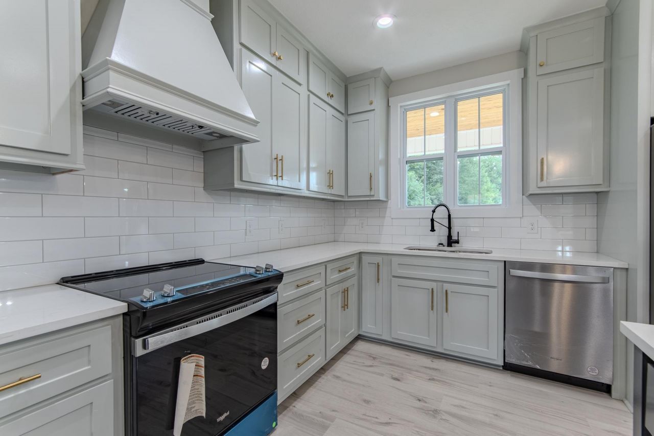 Brick home located on dead-end street in a wonderful subdivision. 3 bedrooms, 2.5 baths, 10' ceilings, kitchen with custom cabinets, quartz counters, upgraded appliances and large island. Master bedroom and bath with soaking tube, separate custom shower. Great room has large brick fireplace. This home has solid wood doors, waterproof LVP flooring, custom windows, so many pluses. 1,927+/- heated square feet of living space plus a 600+/- heated and cooled garage. Covered front and back porches, bring your rocking chairs and enjoy the outdoors. Concrete drive and sidewalk. City water and sewer in restricted subdivision. Drive your golf cart to the Shiloh Golf Course. Extra lot available if you need more land.