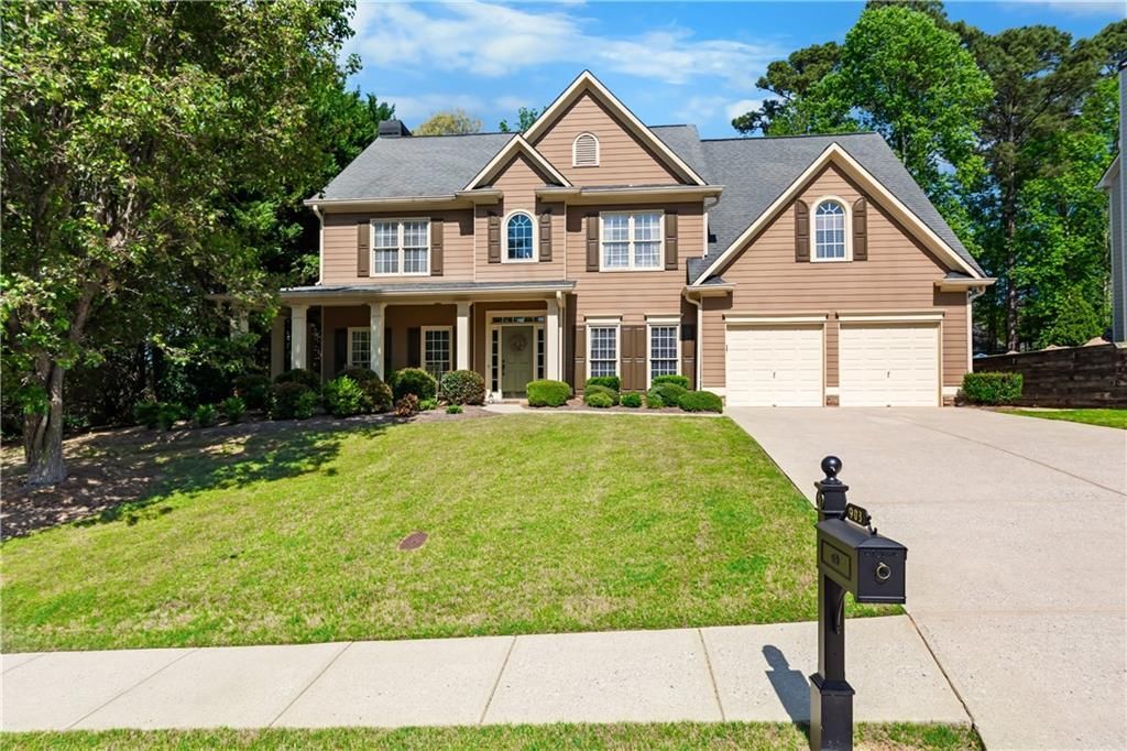 This meticulously maintained 4-bedroom, 2.5-bathroom residence in Woodstock's sought after Arbor View swim and tennis community offers a perfect blend of elegant design and functional living. The home immediately impresses with a grand two-story foyer and beautiful luxury vinyl tile flooring that flows throughout the entire property. The main level is designed for versatility, featuring a formal living room that can easily serve as a home office or playroom, alongside a spacious formal dining room detailed with classic chair rail molding and enough space to seat twelve. The heart of the home is the bright, open kitchen, which boasts ample cabinet storage, a large center island, built-in shelving, and sleek stainless steel appliances, including a gas range. The stylish subway tile backsplash complements the stone countertops, while the kitchen flows seamlessly into the breakfast area and a welcoming great room anchored by a stone fireplace. Large windows throughout the main level flood the space with gorgeous natural light, creating an inviting atmosphere for daily living and entertaining. Upstairs, the oversized primary suite serves as a true retreat, featuring a sunny sitting area that offers a flexible space for a private office or reading nook. The primary bath includes a double vanity and separate tub and shower for a spa-like feel. Two additional spacious secondary bedrooms share a well-appointed Jack-and-Jill bathroom, while a fourth bedroom provides extra space for family or guests. Outside, the large, level lot offers plenty of room for outdoor activities in a quiet, family-friendly neighborhood. Conveniently located in Cherokee County with easy access to the vibrant shopping and dining of downtown Woodstock, this home is move-in ready and perfectly maintained.