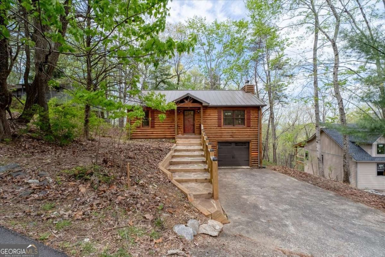 Move right in and start living your mountain dream in this delightful turnkey cabin! Experience the ultimate mountain lifestyle in this quintessential log cabin, perfectly tucked away in the gated Walnut Mountain community. This isn't just a home; it's a turnkey retreat featuring soaring vaulted beam ceilings, an open-concept floor plan, and cozy stone fireplace. Major recent upgrades include a new roof, new retaining wall, and a custom front walkway. Enjoy your privacy on the screened-in porch with peaceful, long-range wooded views. With a bedroom and full bath on each level, it's the ideal layout for guests who want separated sleeping spaces or a high-performing Short Term Rental. The storage/workshop space behind the garage is a huge bonus! Walk to the community lakes, pool, basketball/tennis courts, clubhouse, dog park and trails. Or take a short drive to historic downtown Ellijay, nearby orchards, vineyards and mountain hikes. Sis home has been well cared for and you have the security of knowing the home maintains pest, termite, and rodent warranties that are renewed annually. Experience the quiet of a mountain home that maintains a community feel. Schedule your tour today.