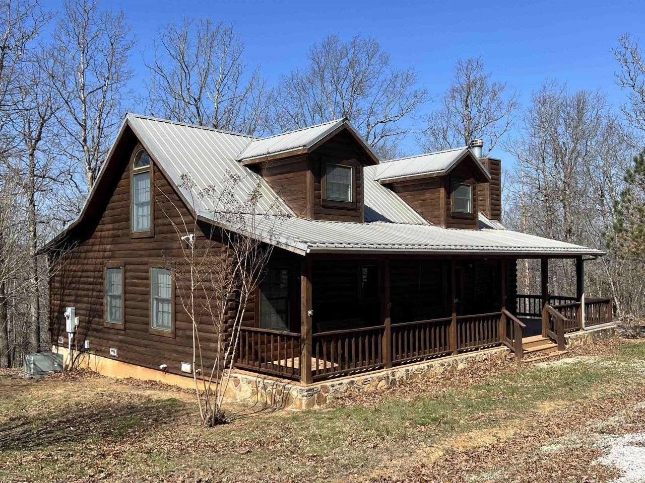 Secluded 3BR-2BA rustic Ozark Mountain log cabin on 15.93 acres m/l!! This 1,504 SF home was built in 2004 from 8 inch cypress logs with dovetailed corners and features a native stone wood-burning fireplace, loft, cathedral ceiling, under-the-stairs pantry, 2 large covered porches, and metal roof. This property also features a 20x30 metal shop building with concrete floor and electric plus a one car carport. The land has gentle rolling topography and approximately 6 cleared acres with fencing, a stocked pond, and a healthy variety of native trees including redbuds, dogwoods, and persimmons. Great hunting environment! Home sits off the dead-end road and is only 10 minutes from the Buffalo National River Park and the Steel Creek access point. Call today to schedule a showing!